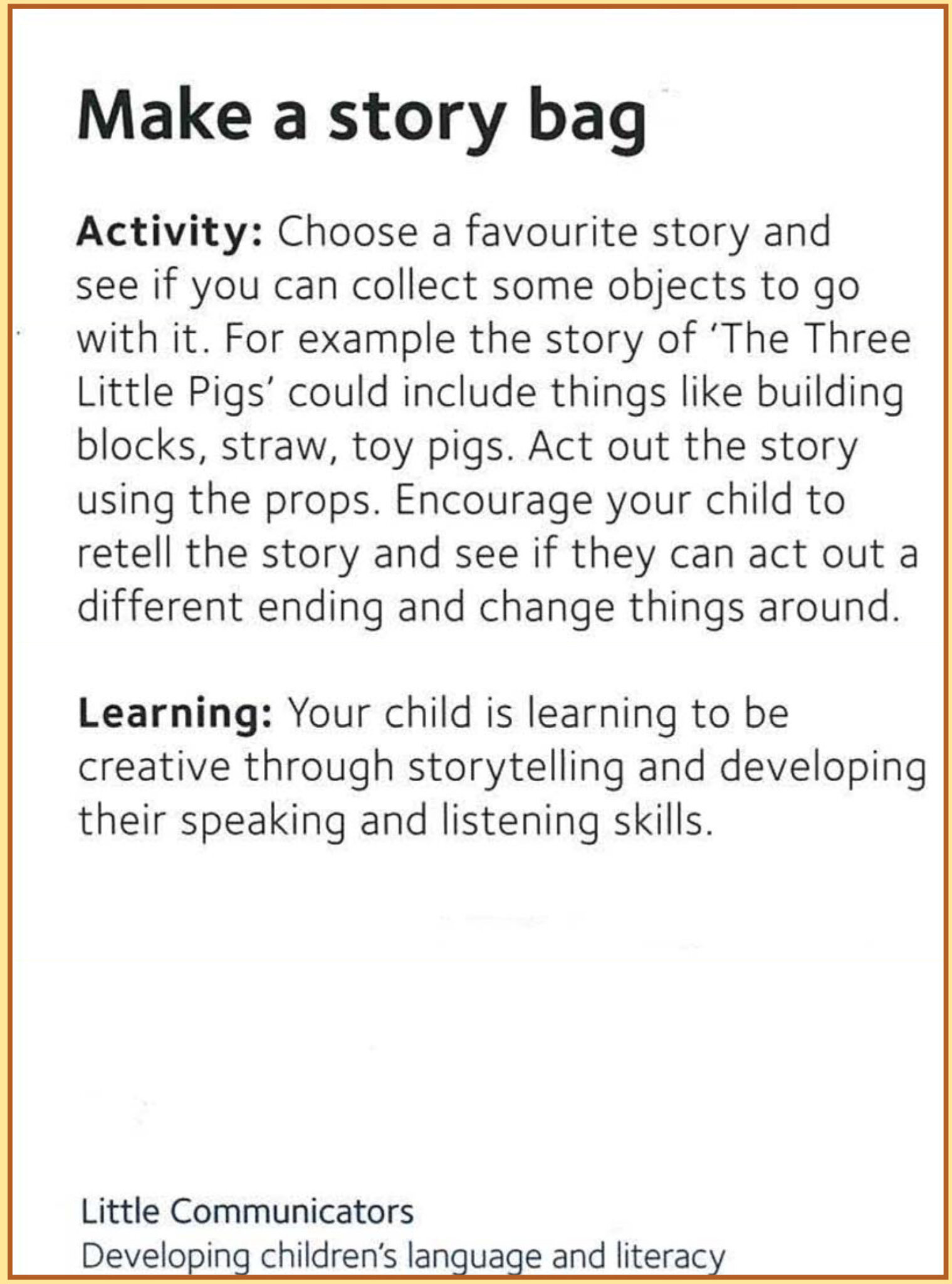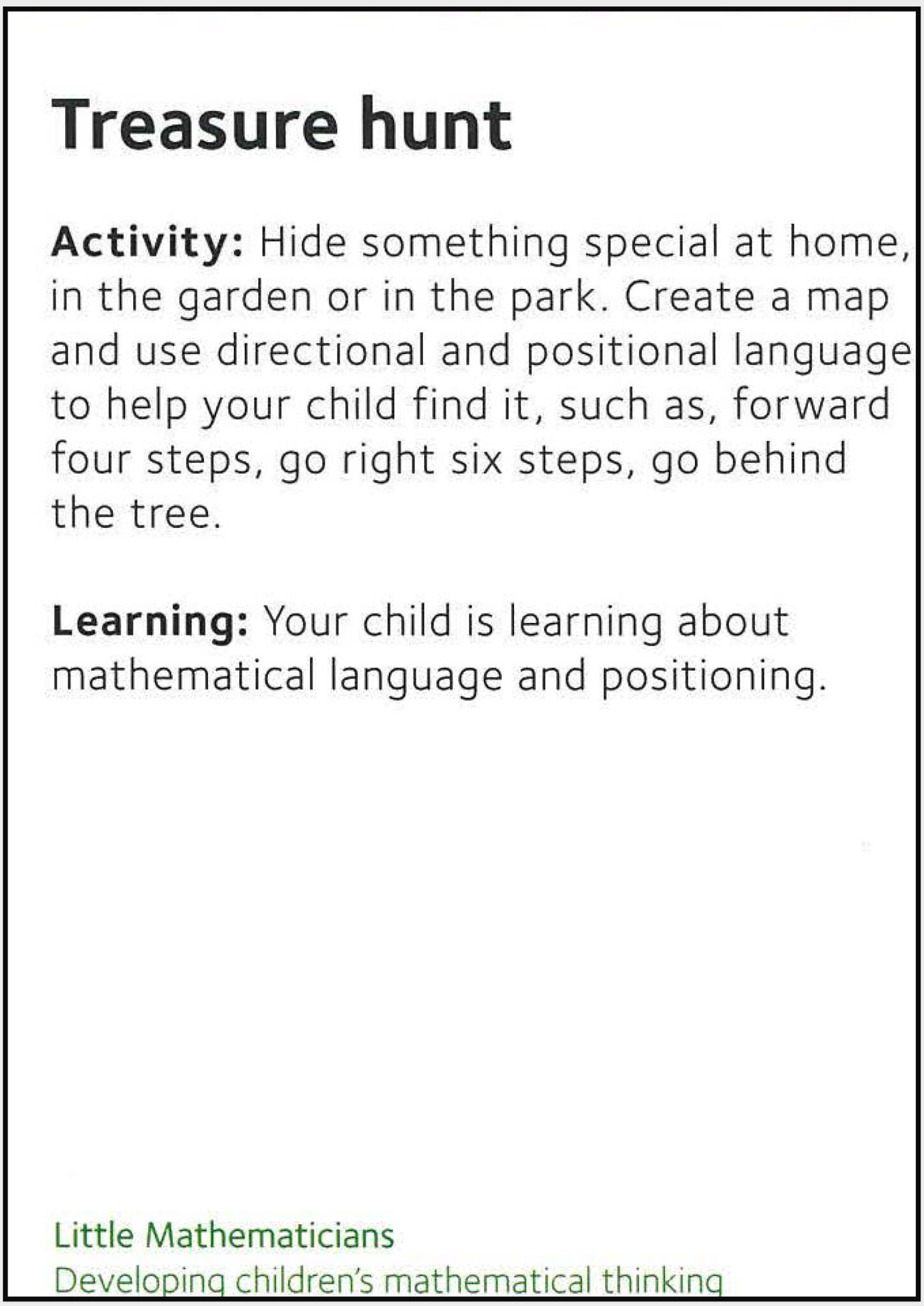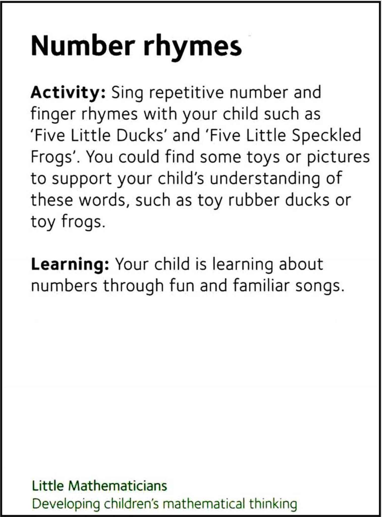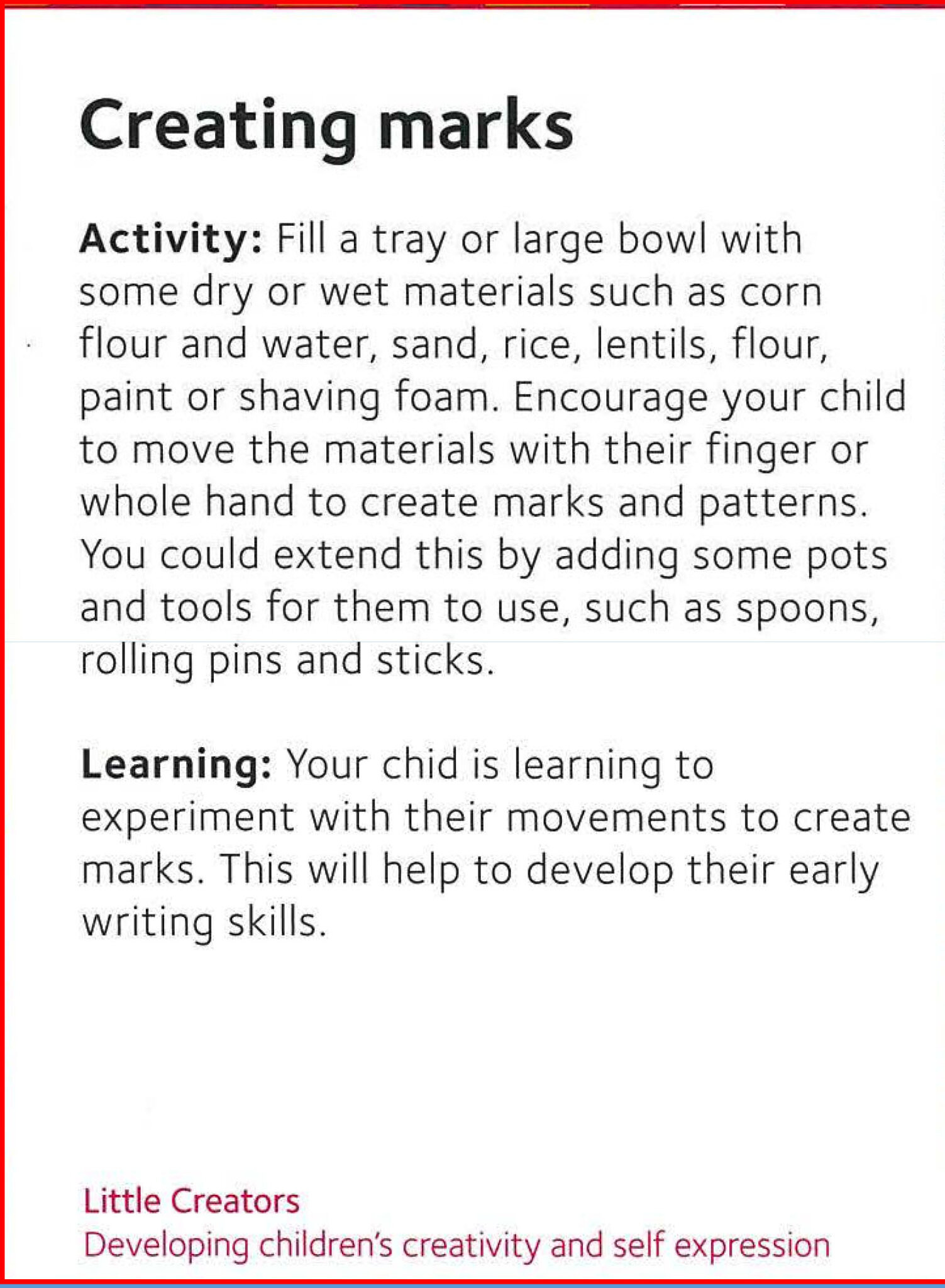 Activities Choose two different activities each day. Try to cover all ten through the week. Activities Set 1 Little Explorers 1a 298 KB Little Explorers 1b 338 KB Little Creators 1a 319 KB Little Creators 1b 368 KB Little Mathenaticians 1a 261 KB Little Mathematicians 1b 271 KB Little Communicators 1a 358 KB Little Communicators 1b 321 KB Little Movers 1a 390 KB Little Movers 1b 238 KB